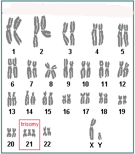 The karyotype of a person with Down syndrome would show ___. | three chromosomes at the 21st pair.,  |