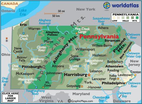 Pennsylvania,  | founded by William Penn as a refuge for English Quakers |