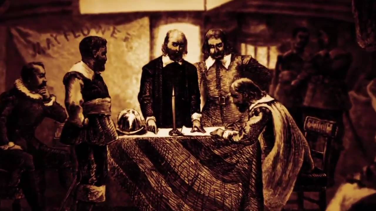 Mayflower Compact,  | the Puritans agreed to a covenant community based on democratic and Puritan principles |