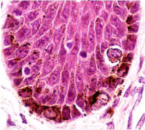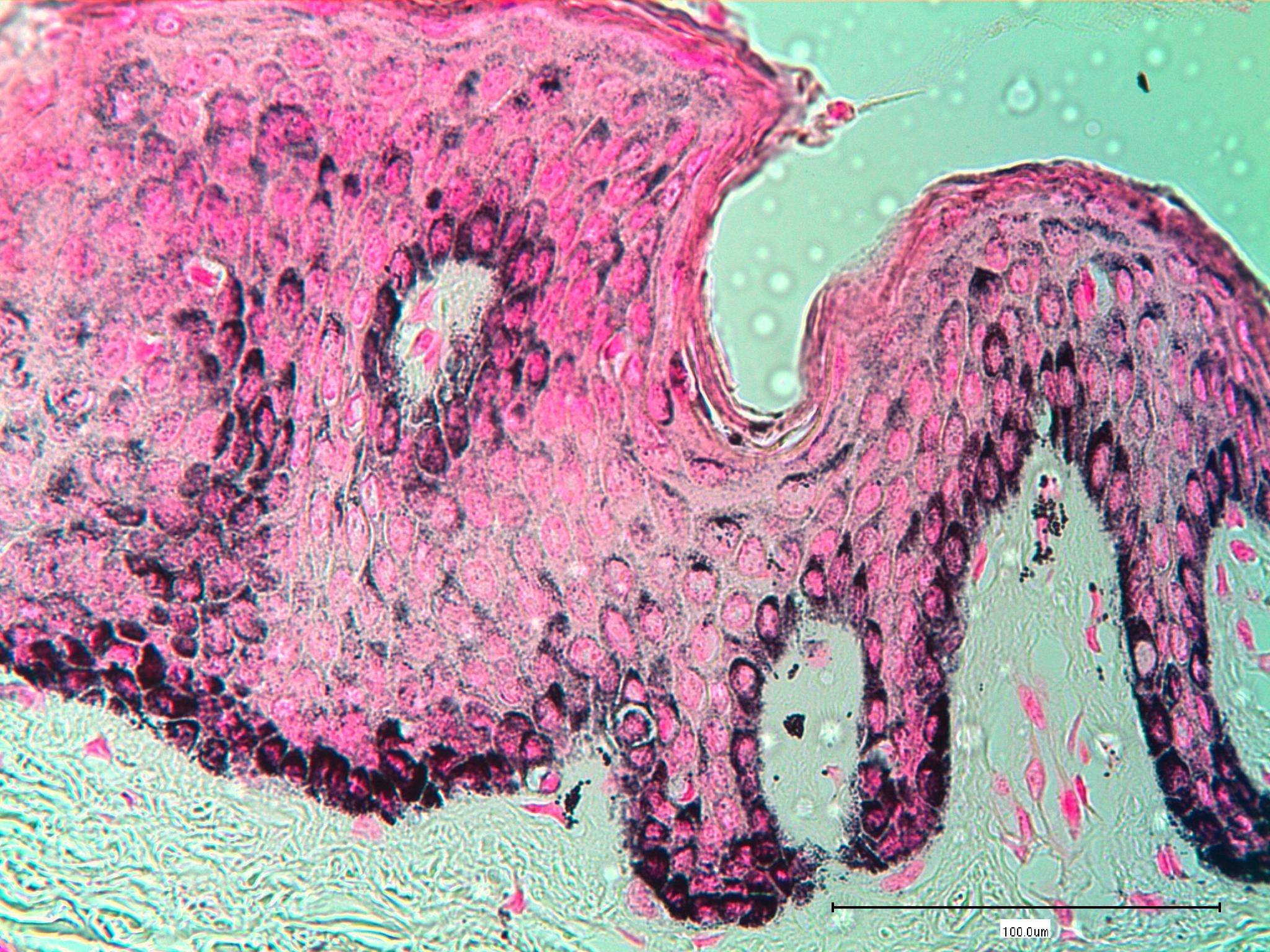 Brown black pigment seen here is:,  | melanin |