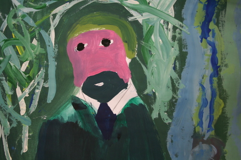 5th Grade Picasso portraits (not necessarily self-portraits!). Students combined the front view and side view of faces into one face the way Picasso did. We collaged some of the facial features from magazines, then used pastels to finish off the work, and came up with some wonderful masterpieces of our own!