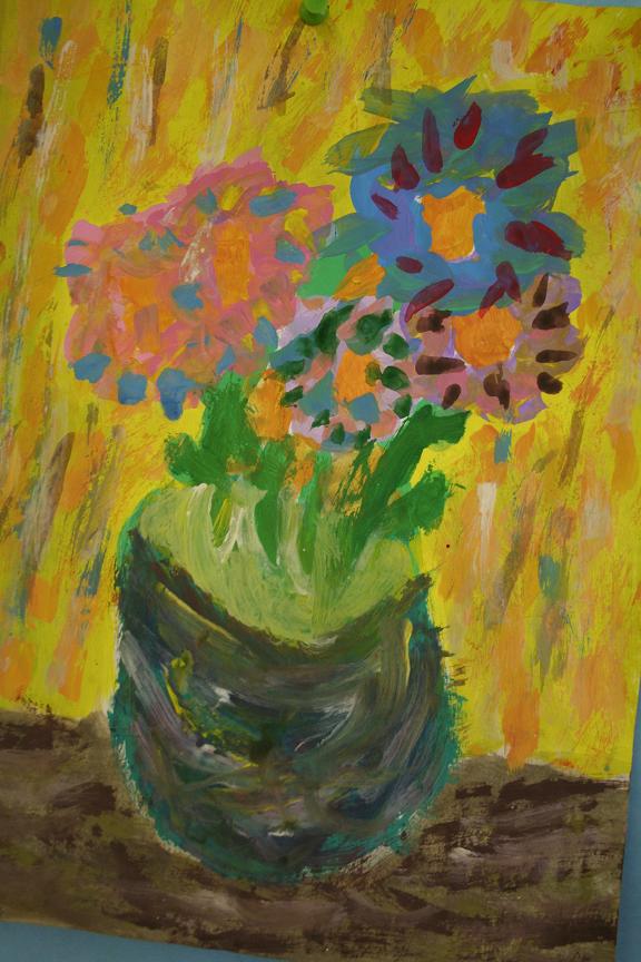 Fifth Graders created line landscapes using a variety of types of lines, drew a still life using chalk pastels, learned about artist Picasso and cubist portraits and created a portrait with collage and oil pastels, drew a still life using chalk pastels, chose a Catholic icon to draw then paint, which satisfied the following Diocesan standards: Strand 1, C-1, PO-a (line in art), b, (color in art), and d, (form in art); C-2, PO-a, b, c, d, e, f; C-3, PO-1 (drawing), PO-2 (painting). Also, Strand 2, R-1, (understand and appreciate the place of art as it reflects our Catholic beliefs) and Strand 3, E-1, PO-a (explore relevancy to Catholic faith). C-5, PO-a, PO-b (safety and care of art materials); Strand 2, R-1 (understand place of art in historical and cultural context).