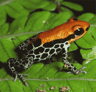 Animals that are poisonous (like this frog) often display bright warning colors known as ______ coloration.,  | aposematic coloration,  |