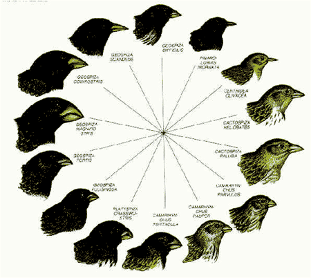 | _______ is the evolution of diversely adapted species from a common ancestor upon introduction to new environmental opportunities. | Adaptive radiation (Darwin's finches from the Galapagos are a classic example),  |