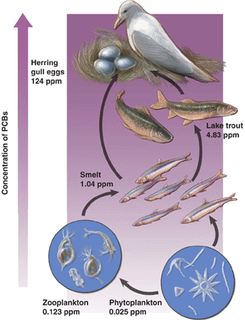 The image below demonstrates the concept of _____.,  | biological magnification of toxins p. 1255,  |
