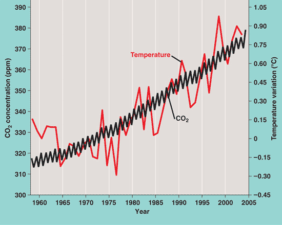 What does the graph below suggest?,  | Atmospheric carbon dioxide levels are strongly correlated with global warming p. 1257,  |