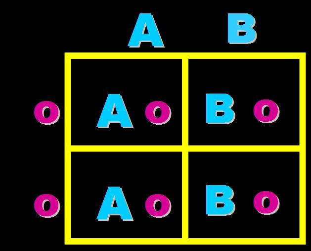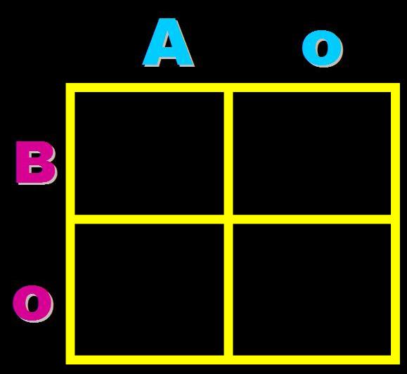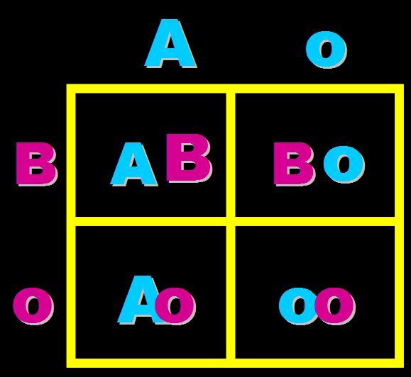 | How would you set up a Punnett Square for a cross between a heterozygous blood type A male and a heterozygous blood type B female? | (Change the A's to IA's the B's to IB's and the O's to i's) p273,  |