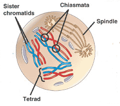 | The reciprocal exchange of genetic material between nonsister chromatids during prophase I of meiosis is called _____. | crossing over p294 |