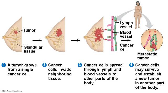 | The spread of cancer cells to locations distant from their original site of development is called _____. | metastasis,  |