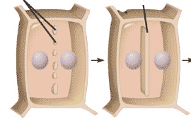 The picture below shows the formation of a _____ in a _____ cell.,  | cell plate, plant cell p235,  |