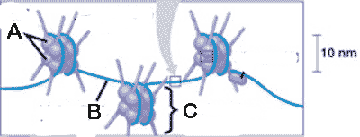 * What is "A" pointing to in the picture below?,  | histone proteins p315,  |