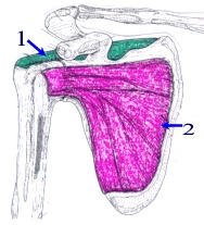 The muscle colored pink (#1) is:,  | Infraspinatus |