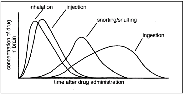 Figure 3.6: Drugs of abuse enter the body by different routes. The intensity of a drug’s effect depends on how the drug is taken.