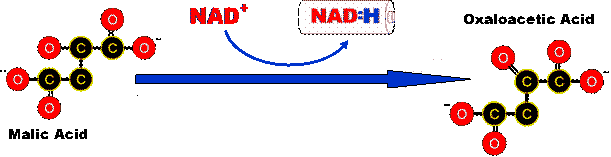 malic acid is oxidized as it gives up hydrogen and two high energy