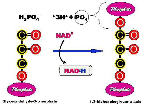 form 1,3 biphosphoglyeric acid. The enzyme responsible is glyceraldehyde-3-phosphate