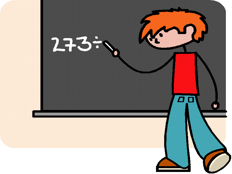 | El niño escribe en la pizarra. |