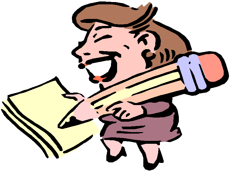 | La maestra escribe en el papel con un lápiz. |
