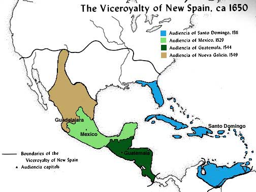 Viceroyalty of New Spain,  | The North American section of Spain's colonies in America, established as a governing district by Spanish king in the 1500s |