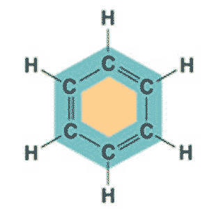 | What is the molecular formula and shape of benzene? | C6H6, ring |