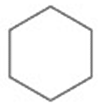 What is the name of this molecule?,  | cyclohexane (The structure you saw on the other side of this card was an abbreviated structural formula. These formulas assume a carbon at each corner and enough hydrogens to make 4 bonds coming off each carbon. Below is the unabbreviated structural formula for comparison),  |