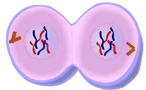 TELOPHASE,  | The last phase of mitosis when a complete set of identical chromosomes is positioned at each pole of the cell, the nuclear membranes start to form, the chromosomes begin to uncoil, and the spindle fibers disassemble |