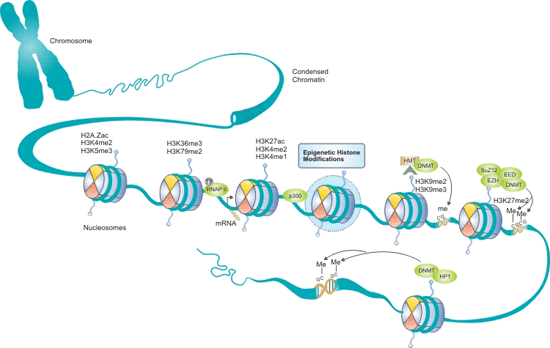 HISTONE,  | Type of protein that organizes and condenses chromosomes. |