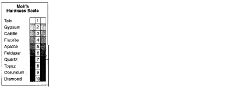 | description of a mineral's ability to be to scratch a mineral or be scratched by another mineral | hardness |