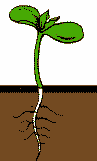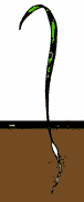 What type of angiosperm seedling is shown below (monocot or dicot)?,  | monocot (notice the single cotyledon,  |