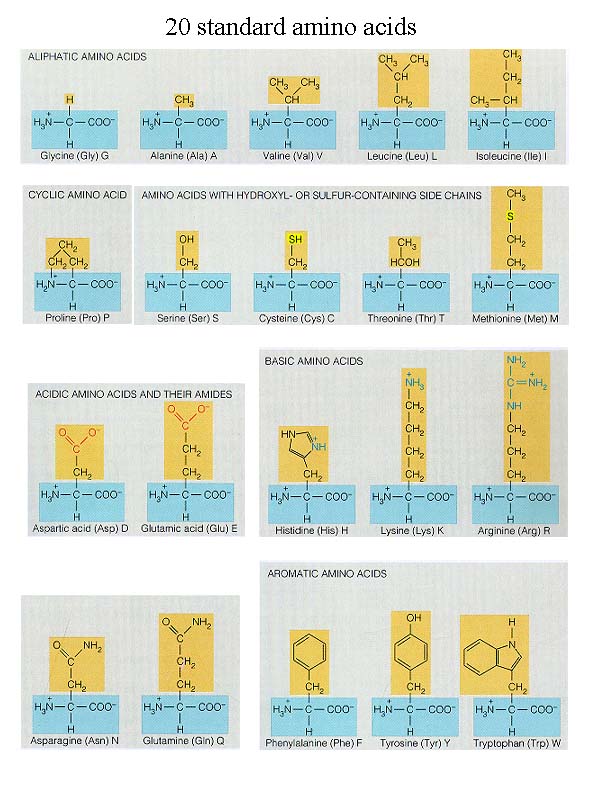 amino acids (pg.42),  | the smallest unit of a protein("subunits")...20 amino acids make up 100s of different proteins |