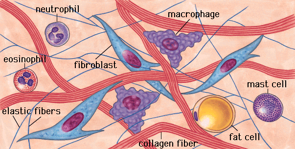 connective tissue (pg.523),  | one of the four main types of tissue in the human body; functions include support,protection,insulation,and nourishment |