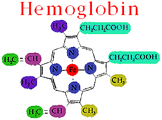 hemoglobin (pg.42),  | a protein found in red blood cells that attaches to oxygen(because of an atom of IRON(Fe) in the center of the molecule) so that the oxygen can be delivered throughout a body |