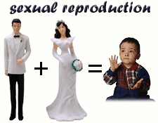 sexual reproduction (pg.38),  | reproduction in which two sex cells join to form a zygote;produces offspring that share characteristics of both parents |