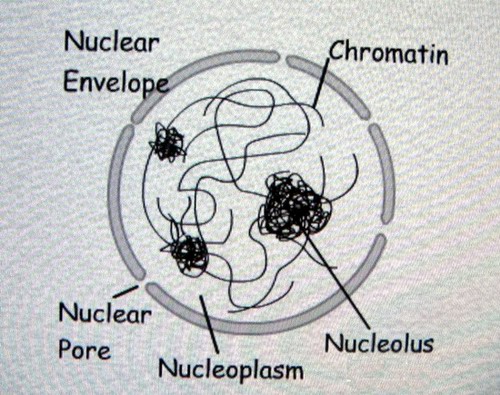 Nukleus,  | Kontroliše procese u ćeliji, sadrži nasledni materijal |