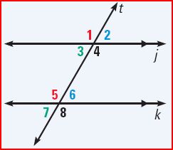 angles 1&5, 2&6, 3&7 or 4&8,  | corresponding angles |