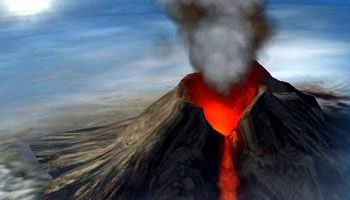 | volcano | opening in the earth, often raised, through which lava, rock, ashes, and gases are forced out |