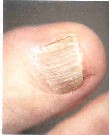 | ringworm of the nails that invades from the free edge and spreads toward the root |