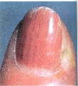 | bacterial inflammation of the tissues surrounding the nail; pus is usually present, also a gradual thickening and brownish discoloration of the nail plate |