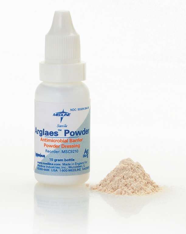 Arglaes Powder,  | can offer bioburden reduction and fluid management in an easy-to-apply powder format, making it ideal for deep, tunneling and highly exudating wounds. |
