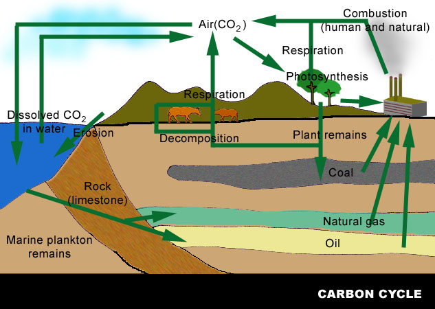 | two human processes that increase the carbon dioxide concentration in the atmosphere | combustion (emissions) and deforestation |
