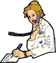 | La enfermera habla por teléfono. | The nurse speaks on the phone.,  |