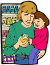 | Mamá compra medicinas. | Mom buys medicines.,  |