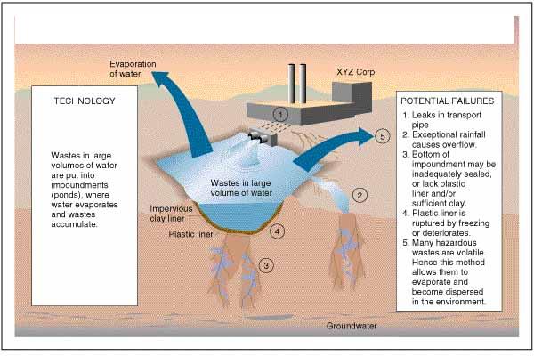 | Which land disposal method puts waste in man-made waste ponds? | Surface Impoundments |