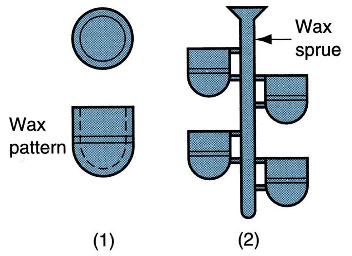 | investment casting | pattern made of wax is coated with refractory material to make mold, then was is melted away prior to pouring metal,  |