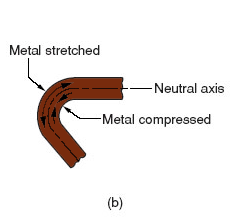 | Effect of sheet metal bending on the metal | Metal on inside of neutral plane is compressed, while metal on outside of neutral plane is stretched. both compression and tensile elongation of the metal occur in bending.,  |