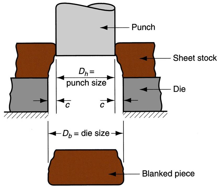 | Punching | similar to blanking except cut piece is scrap, called a slug,  |