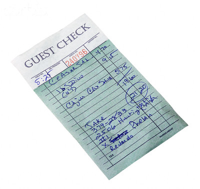 | cook; chef | el cocinero / la cocinera,  |  | spoon | la cuchara,  |  | teaspoon | la cucharita,  |  | bill; check | la cuenta,  |  | money | el dinero,  |  | tablecloth | el mantel,  |  | menu | el menú,  |  | table | la mesa,  |  | waiter / waitress | el mesero / la mesera,  |  | plate | el plato,  |  | tip | la propina,  |  | reservation | la reservación,  |  | restaurant | el restaurante,  |  | salt and pepper | la sal y la pimienta,  |  | napkin | la servilleta,  |  | credit card | la tarjeta de crédito,  |  | cup | la taza,  |  | fork | el tenedor,  |  | I'm hungry | tengo hambre,  |  | I'm thirsty | tengo sed,  |  | glass | el vaso,  |  | knife | cuchillo,  |
