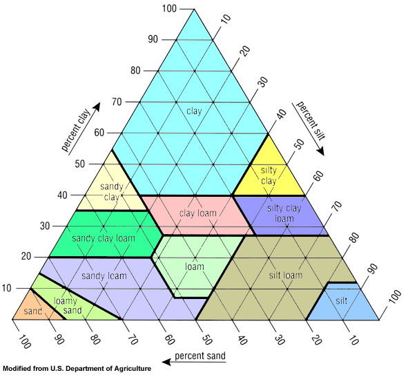 soil texture triangle | is used to classify the texture class of a soil. The sides of the soil texture triangle are scaled for the percentages of sand, silt, and clay.,  |