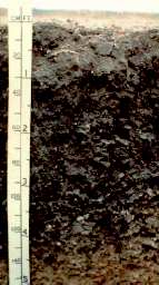 Vertisols | are dark black soils rich in expandable clay minerals. The clay readily swells upon wetting and shrinks when dried. Though found in every type of climate they are often found in steppe and wet/dry tropical climates where the soil develops deep cracks as it dries. Surface fragments fall into the cracks and are "swallowed" when the soil swells during wetting. It then develops an "inverted profile" with organic material typically found near the surface of the profile is now found at depth.,  |