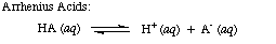 | Arrhenius Acid | A substance that dissociates in aqueous solution to produce hydrogen ions,  |