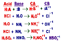 | Bronsted-Lowry Acid | a material that gives up hydrogen ions during a chemical reaction.,  |